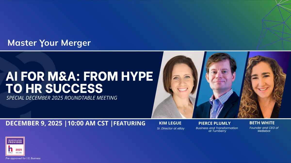 Join us for this month’s HR M&A Roundtable as we dig into one of the toughest challenges in M&A: creating integration playbooks that work in real life.