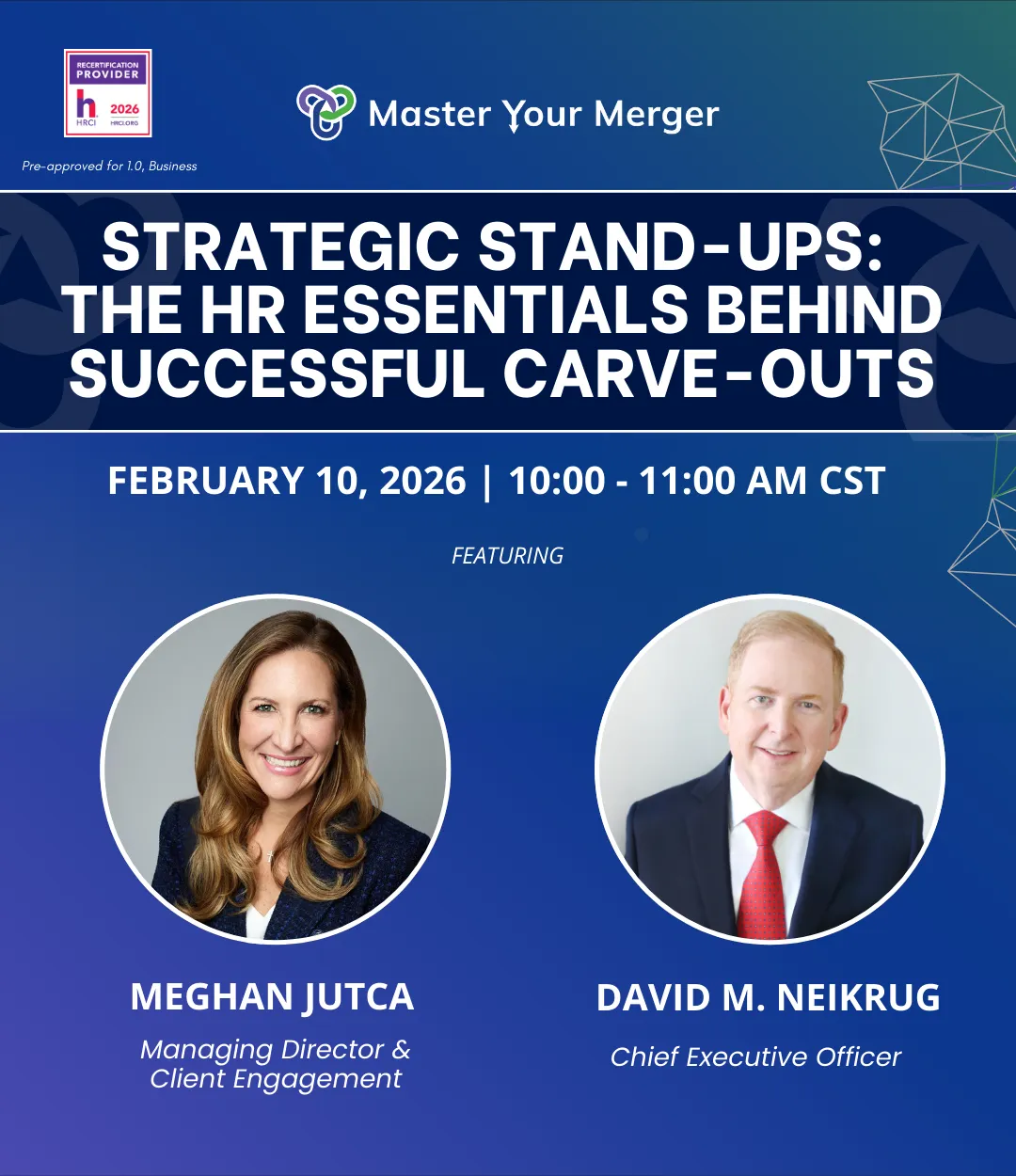 Join us for a practical, fast-paced session where they’ll share real-world lessons on how HR can turn complexity into clarity and uncertainty into operational readiness. We’ll break down what truly matters, from workforce continuity and leadership alignment to compliance, communications, and operational structure, so you can support carve-outs with confidence.
