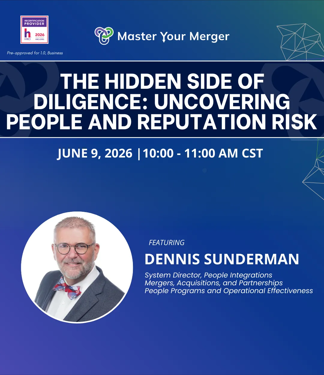 Join us for this month’s HR M&A Roundtable as we discuss the techniques for assessing employer culture and identifying leadership or reputational red flags before they surface post-close.