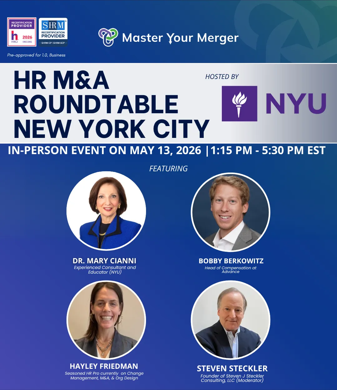 Join the HR M&A Roundtable and our hosts at NYU for a closed-door, in-person conversation focused on how leaders navigate the people realities of integration.